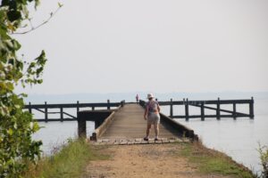 Het is kennelijk niet goed mogelijk om aan te meren aan de kust. Vandaar dat vissersdorpjes voorzien zijn van een lange pier die ver de zee in steekt. Deze lijkt niet echt in gebruik te zijn en in de buurt zagen we alleen vervallen scheepjes. Het was wel leuk om zo’n eind de zee in te kunnen lopen en droge voeten te houden.