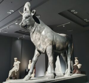 Natuurlijk ontbreekt ook de de god Apis niet met de vorm van een stier die tussen zijn hoorns de maan draagt. Dit beeld was al lang geleden in stukken gevonden maar pas recent kon er geld gevonden worden om het weer in de oude luister te herstellen.