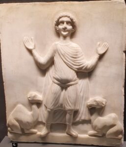 Een heel eind verder in de tijd is de Koptische periode. Daar zie je de frivoliteit van het katholieke leven toch wel terug. Het was zeker niet alleen het rijke Roomsche leven … Overigens betreft het hier St Menas, een martelaar die later heilig is verklaard.