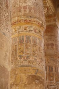 Als eerste deden we een museum aan. Hier lagen allerlei beelden die eerder uit tempels gehaald waren en er was ook een echte mummie. Maar wat ik het aardigste vond waren de reliëffen die nu eens in kleur te zien waren. Dat ziet er zo veel beter uit!