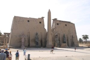De laatste tempel voor vandaag was vlak naast het hotel: de tempel van Luxor. Deze tempel is duidelijk meer gehavend dan de vorige hoewel deze ook een flinke tijd voor het grootste deel onder de grond lag.