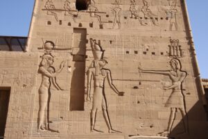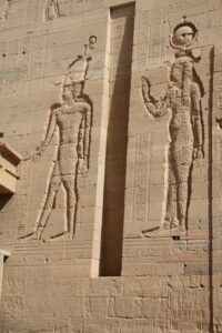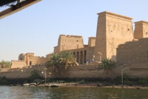 Vandaag stonden we voor het Philae tempelcomplex. Dit stond aanvankelijk op het eiland Philae in de Nijl en ook in een gebied dat zou overstromen. Het is dus verplaatst naar een eiland onder de dam. Je komt er met de boot.