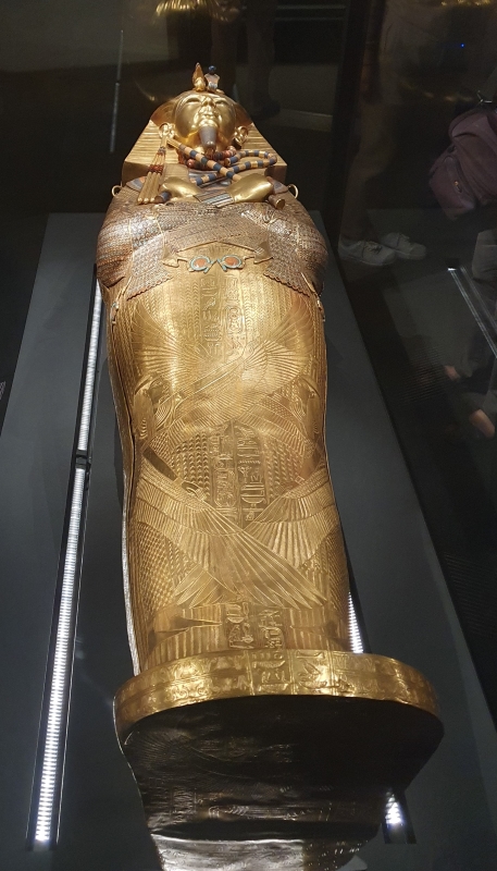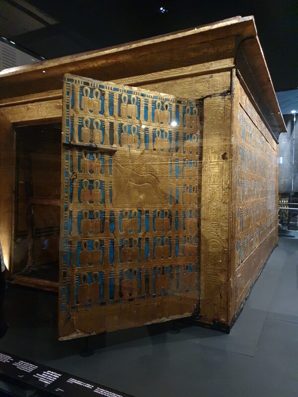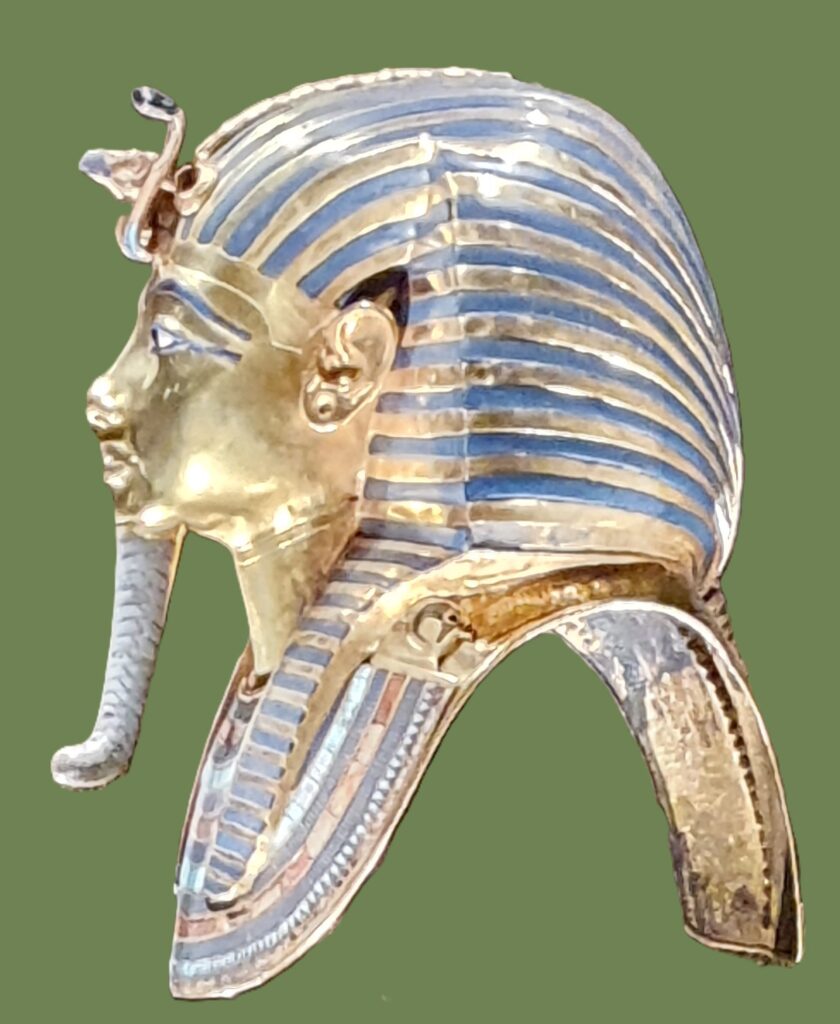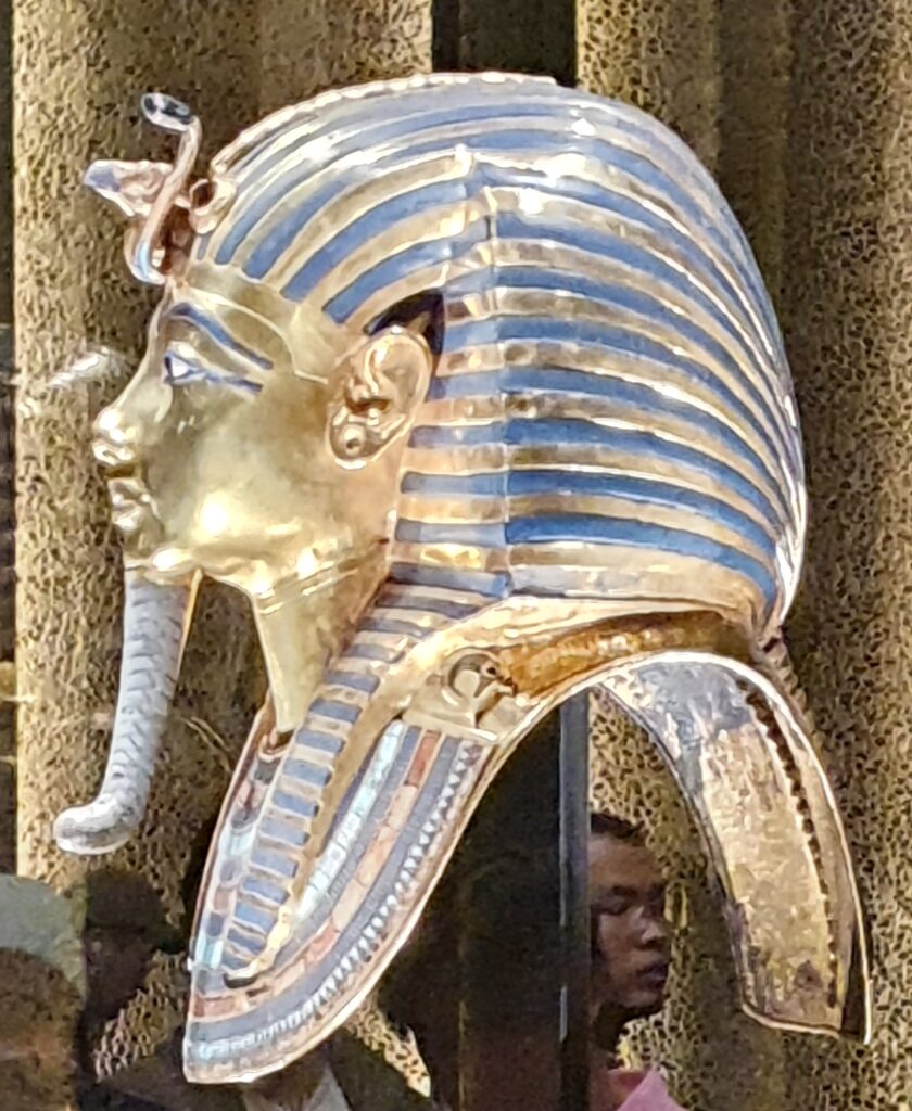 Als laatste nog het dodenmasker van Toetanchamon – ook van goud – waar ik met AI de achtergrond verwijderd heb. Het staat achter een omheining en dan achter gepantserd glas. Slecht bereikbaar dus.