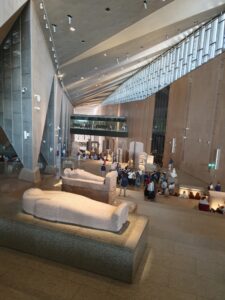 Aanvankelijk vond ik de naam wat aanmatigend maar nu we er geweest zijn mag het die naam echt wel dragen. Wij hebben er twee wandelingen van 2 uur doorheen gemaakt. Een die door de hele geschiedenis van Egypte leidde en een die in het teken stond van het leven en overleven van Toetanchamon. We kunnen ook bij die beperkte tocht niet zeggen dat we alles tot ons hebben kunnen nemen. Er zijn nog meer tochten door het museum te maken bovendien.