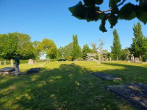 Er staan wat gebouwen van ondernemingen rondom die toch wel een landelijk karakter uitstralen. Alsof ze tot het dorp behoord hebben. Wat wel bewaard is gebleven is de begraafplaats. Daar vonden we nog wel wat boeiende verhalen.