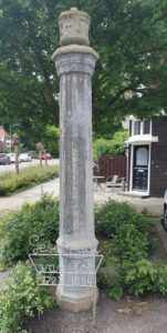 We lopen wat langs de haven en de stadsmuur van het oude Delfzijl en steken dan twee bruggen over om vervolgens een heel ander plaatsje in te lopen: Farmsum. Dat dorp moet vroeger wat geweest zijn. Nu rest slechts de Borchshof, een parkje, waar eerder de borg (burcht) van de welgestelde familie Ripperda stond. Niettemin is het aardig om langs de hoofdstraat te lopen. Er is een aardig kerkje en ook een geselpaal, zoiets hadden we nog niet eerder gezien. Een schandpaal kenden we wel. We fantaseerden dat als zeelui zich misdroegen ze aan straf konden ontkomen door aan boord van een schip te gaan. Maar meteen even geselen kon natuurlijk snel gebeuren zonder al te uitgebreide rechtspraak …