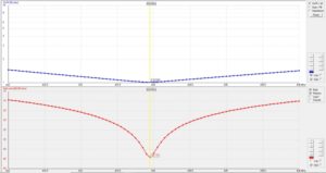 Ik besloot meteen maar in het diepe te gaan dit keer en 4NEC2 van Arie Voors te installeren en een NEC4-licentie bij de LLL in de VS aan te vragen. Binnen redelijke tijd kon ik het programma laten doen wat ik wilde. Dankzij Owen Duffy, de auteur van bovengenoemd ontwerp, hoefde ik niet vanuit het niets te beginnen. Hij stuurde mij zijn ontwerp. De draaddiameter veranderen in de instellingen en de afstemming aanpassen lukte ook vrij snel. Het resultaat mag er ook wel zijn.