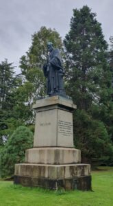 Het was nog droog dus bezochten we eerst het park. Meteen stuitten we op een standbeeld van Lord Kelvin. Nu had ik die altijd versleten voor een Engelsman maar hij blijkt in Belfast geboren te zijn. Zo zie je maar, steeds leer je wat nieuws.