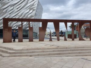 Vrijdag reden we van Wicklow naar Belfast, een forse rit langs Dublin. ’s middags kwamen we aan en konden ons meteen installeren. Na wat gegeten te hebben vertrokken we naar de binnenstad. Een bus bracht ons daar.