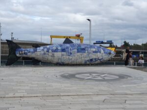Veel bijzondere zaken kent de stad niet, of het moet een vis van mozaïek zijn. Langzaam maar zeker werden we naar het havengebied geleid. Of liever, wat er van over was. Er was behoorlijk veel nieuwbouw en men was daar kennelijk nog lang niet mee klaar.