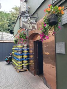 Niettemin was het aardig wandelen door het park en vlak bij de fietsen stuitten we op een pub met de naam Franciscan Well. Ze maken hun eigen bier, dat klonk al goed. Bovendien heb ik in de familie nog al wat Franciscanessen, dus natuurlijk moesten we dat bier proeven. Bovendien maakten ze er pizza’s zodat er ook wat te eten was. Daar hebben we dus gezellig gezeten.