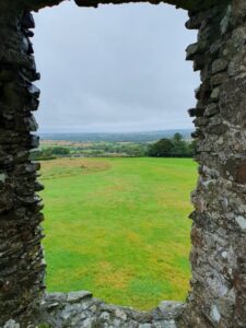 De heuvel steekt zo’n 158 m boven de rest van het landschap uit en biedt hierdoor een weids uitzicht over de volledige omgeving, vooral op een heldere dag. Vandaag niet dus! Deze locatie heeft altijd al mensen aangetrokken, wat weerspiegeld wordt in de vele monumenten in de buurt. De legende gaat dat St Patrick in 433 na Christus een paasvuur hield op deze heuveltop. Sowieso is dit al lange tijd een spirituele plek, voor zowel heidenen als christenen. Op de heuvel vind je onder andere de ruïnes van een kloosterkerk en -school, samen met een vroege Gotische toren en een 12de-eeuws zogenaamd mottekasteel (burcht in steen of hout, bovenop een heuvel), gebouwd door Richard Fleming, Lord of Slane. DIt alles volgens de reisgids.