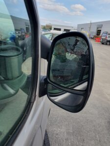 Het laatste stuk van de reis hadden we wat pech. De tweebaansweg versmalde zich net op het moment dat er een toerbus van de tegenovergestelde kant langskwam. Dat kostte ons de buitenspiegel.