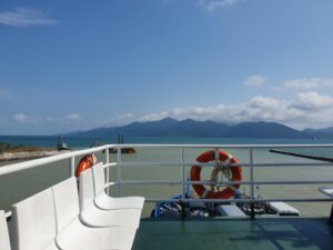 Gisteren maakten we een lange autoreis van Khao Yai naar Koh Chang, vlak bij de Cambodiaanse grens. Het is een eiland, dus we moesten met een pontje oversteken: dat was weer eens iets anders! Daarna was het een korte reis naar het strandhotel waar we nu zitten. Na ’s middags even rondgewandeld te hebben om de boel hier te verkennen hebben we ’s avonds aan het strand kunnen dineren. Dat was ook wel bijzonder.