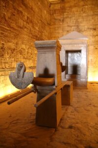 Verder had deze tempel – zoals vele – ook een Nilometer. Volgens deze zou iedereen een belangrijk deel van de belasting terugkrijgen vanwege de extreem lage stand van de Nijl.