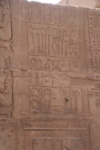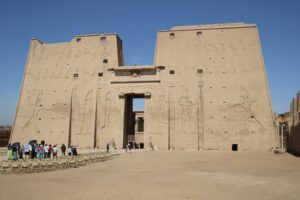 In het verder noordelijk geleden Edfu bezochten we de opmerkelijke tempel van Horus met grote standbeelden van deze valkengod. Horus is de god van de hemel en tot aan de derde dynastie werd de farao als reïncarnatie van Horus gezien. De tempel van Horus is in de negentiende eeuw helemaal iuitgegraven en is een van de meest complete tempels die in Egypte is te vinden.