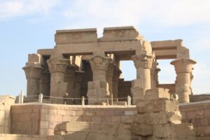 De eerste stop op weg naar Luxor is bij de tempel in KomOmbo. In de tijd van de oude Egyptenaren was het linkerdeel van de tempel gewijd aan Sobek en het rechterdeel aan Haroëris. Twee zuilengangen leiden uiteindelijk naar twee aparte altaren, voor iedere god een.
